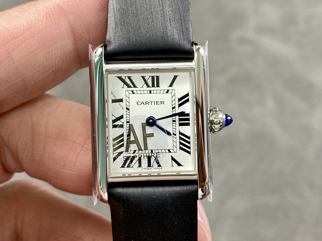 Dupes are much cheaper. You can find good dupes for $100, and premium ones cost up to $400. These watches copy the Cartier Tank design but don’t have the same luxury materials or details.